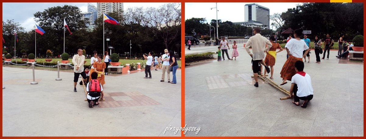 If you’re lucky, then you will find some street performers like this: men and women dancing tinikling.