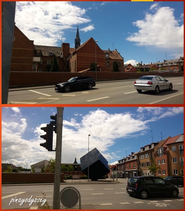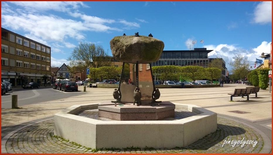 The photos above shows Svendborg Bycenter, a little shopping mall adjacent to a pedestrian or shopping street. We parked somewhere there, and then, we started walking towards our first stop. On our way, we passed by a very interesting fountain in the Centrum Pladsen. It wasn’t functioning, but the four little fat men pulling bronze ropes connected to a huge rock and separated by steel plates still caught my eye. The ‘Vandkunsten’ (Water Art) was donated to the city by DGI and Marksman associations in 1994. (see photo below)