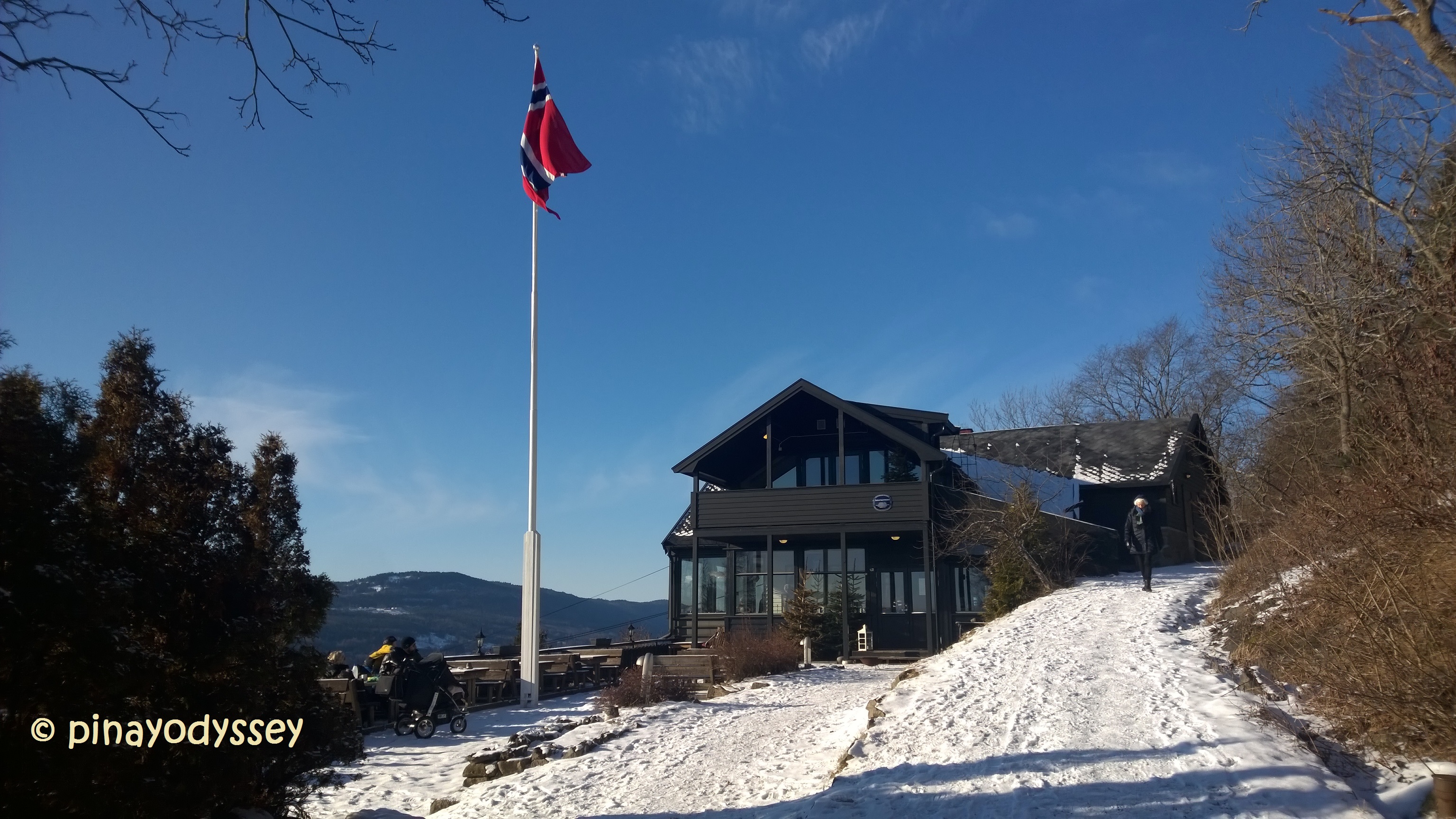 Spiraltoppen is about 3-4 kilometers away from the Drammen train station, i.e., if you take the zigzag trail going up. It wan’t very far, and the walk was really fun and enjoyable, not to mention the occasional slip of the foot because of the icy ground.