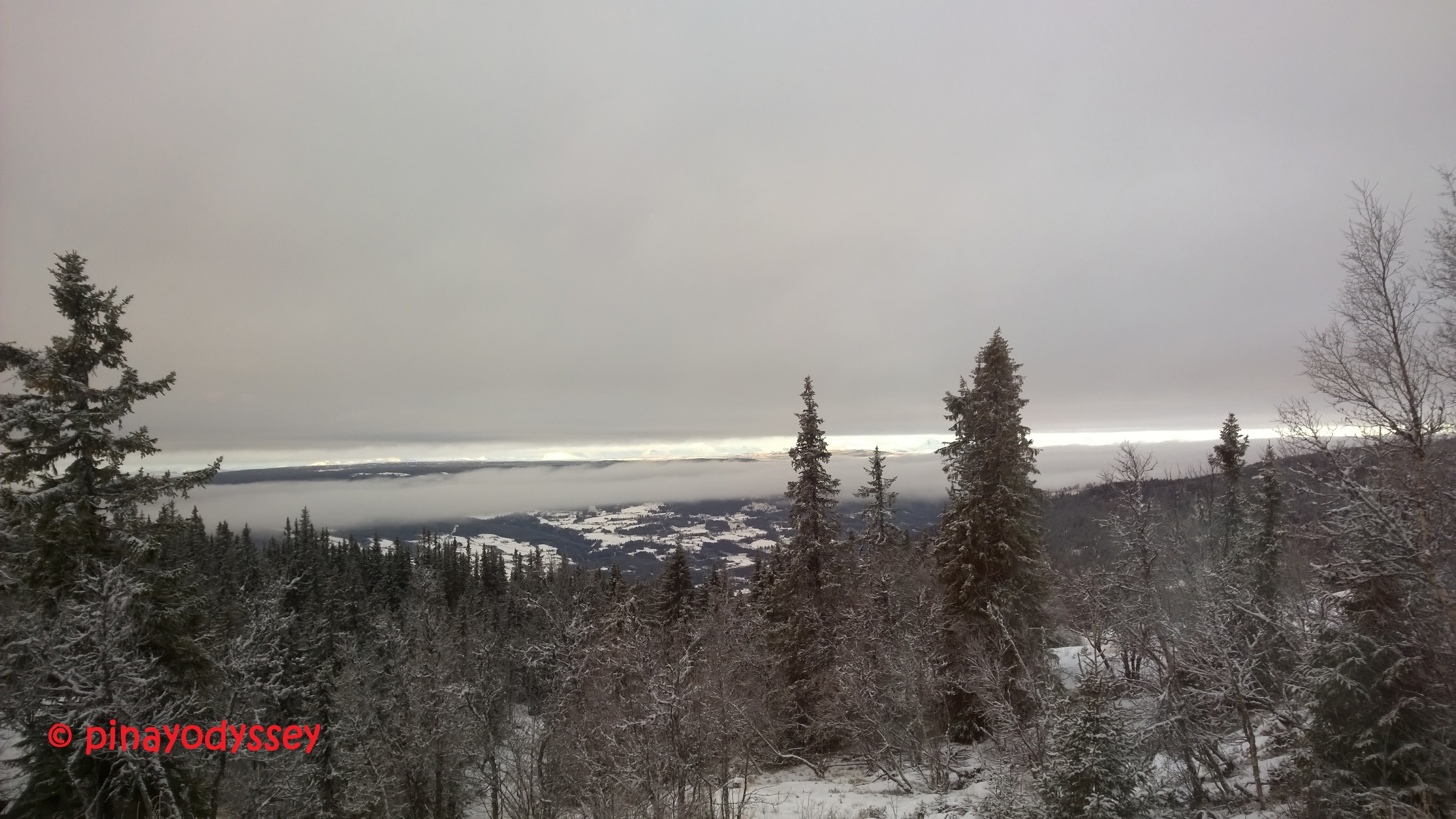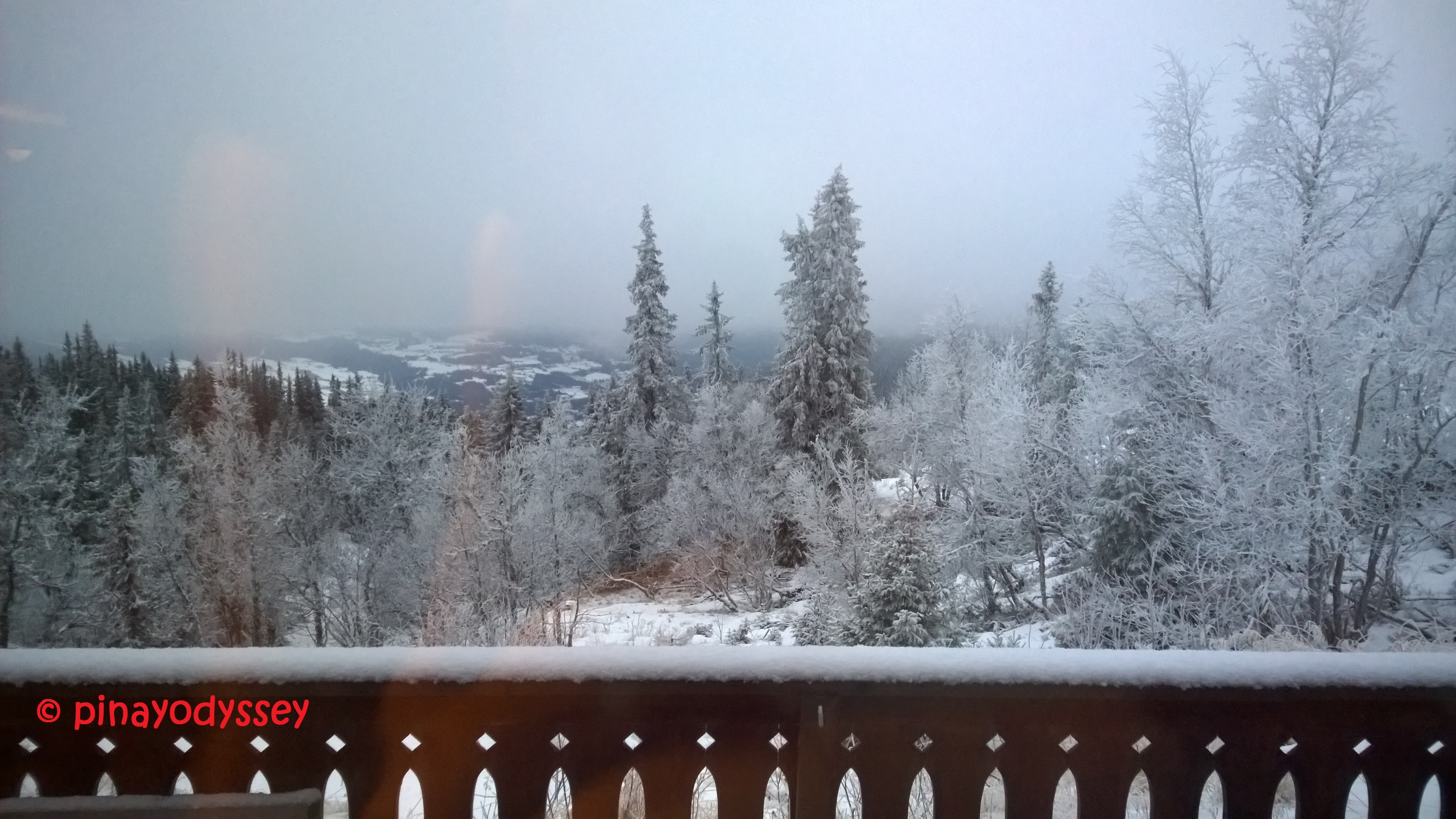 Driving from Bærum to Valdres takes about 3-4 hours. We left very early in the morning, and there wasn’t much to see on the way except for the white wilderness so I just rested myself and waited for the engine to come into complete halt. At around noon time, we reached the grandparents’ big cabin located not very far from Valdres Alpinski Senter. I couldn’t help but be amazed by the scenery outside the window! At first, I thought there was a huge lake in the distant. But later on, the sea of clouds cleared up and voila! A valley!