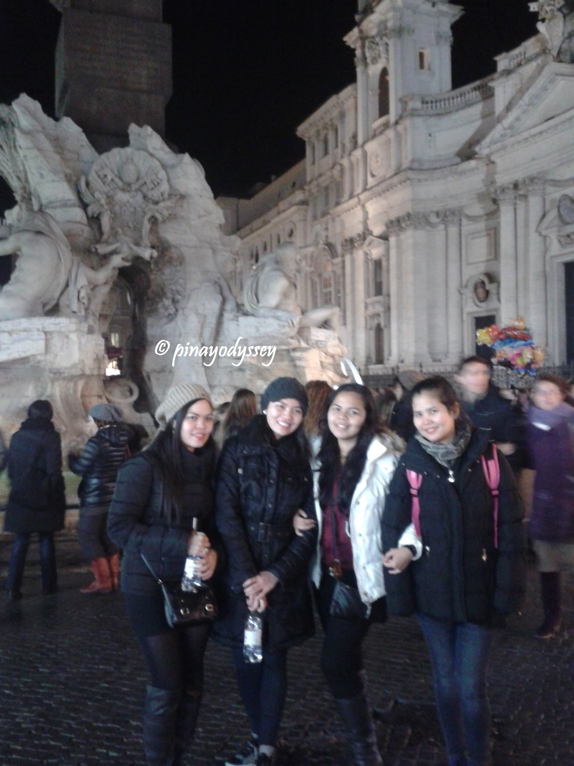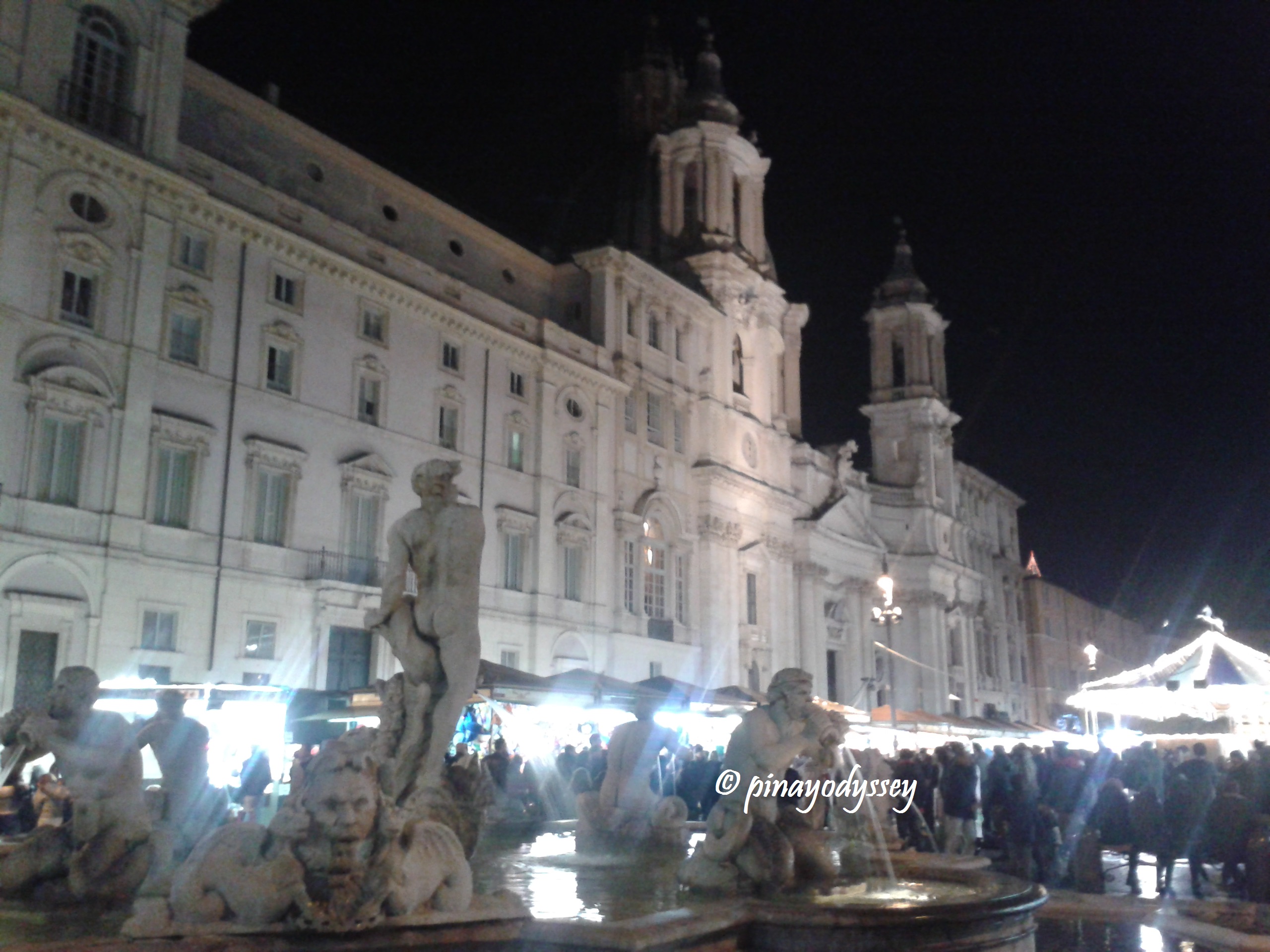 After enjoying a delicious Filipino dinner, courtesy of our hosts, we started walking along the Tiber River, the third longest river in Italy with 406 kms in length. We passed by several sights, a nice Christmas bazaar, fountains and parks. The wonderful thing was that we didn’t really have a destination. So we just walked and fully enjoyed Rome by night.