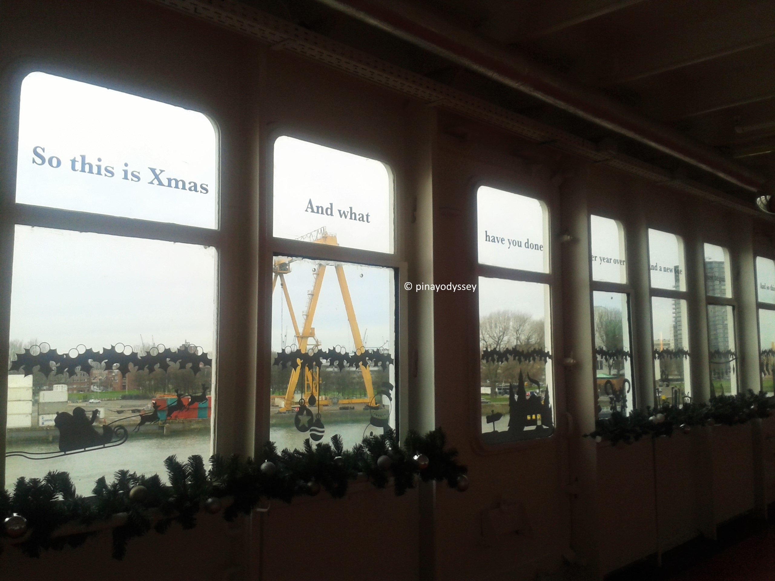 As part of our little tour in Rotterdam, courtesy of my aunt and uncle, we went aboard the ship and caught a glimpse of the city from there. It is absolutely okay, and free, to explore the ship and learn about its history, from its launching in 1958 by Queen Juliana herself to being an ocean liner and cruise ship of the Holland-America Line (1959-1997), Premier Cruises (1997-2000), and Rotterdam Drydock Company (2003–2005).