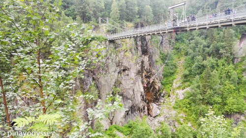 After the world wars, the heavy water plant was shut down. It was opened again in 1988 as the Norwegian Industrial Workers Museum, where the history of industrial development in Norway, particularly in Rjukan, is presented. A tour to the said museum culminates the University of Oslo International Summer School excursion in Telemark. Our bus parked at the foot of the hill and could not go further, so we hiked up to Vemork factory, and on the way, we were astounded by the surrounding mountains and canyons. Bungee jumping was made possible at the entrance bridge. I had no idea where those bungee jumpers got their guts!