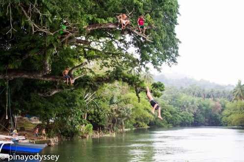 Attraction #5. Loboc River Cruise and Floating Restaurant. This is probably Carl’s favorite part of the trip. The cruise along the Loboc River aboard a floating restaurant was very relaxing, and amusing at the same time! Yes, it rained hard while we were cruising, but the food was good, the nature chill, and the live music on board was appealing! We stopped once to watch a cultural performance by the locals, and we also had fun watching kids jump off from the trees to the river! They did like the attention, too, being cheered up and applauded by the tourists passing by.