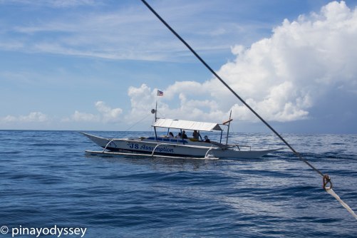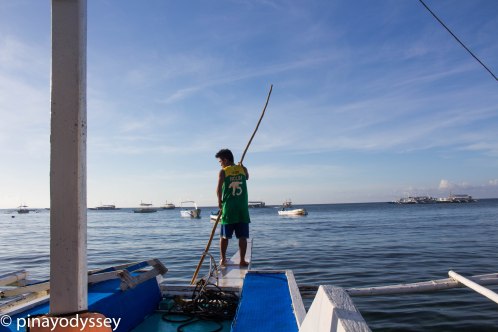 So, we opted to call a tricycle. It was an achievement to convince Carl to ride the trike.. 😉 Our boat was waiting for us at Alona Beach! We basically had the boat to ourselves, and we freaking loved it! First stop: dolphin watching. We did dolphin- and whale-watching in Tenerife last December, and it was a cool experience! In PH, there were more dolphins, and in a matter of minutes, they came hoping around the boats to the tourists’ amazement!