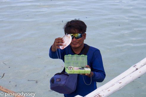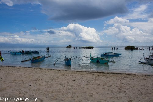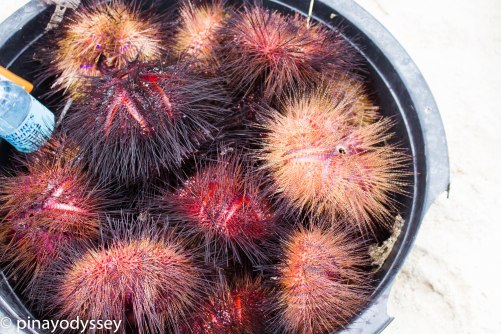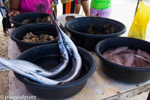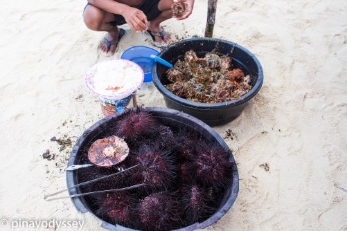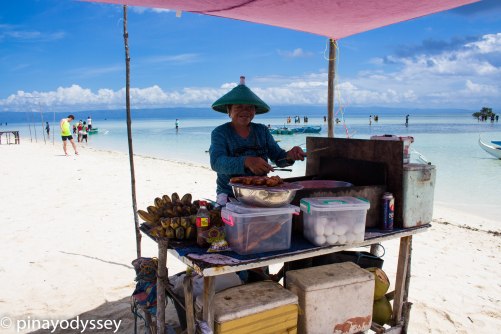 There were a few merienda or snack vendors on the sand bar, selling banana cue, fresh buko or coconut juice, chips, drinks, fish, sea urchins and oysters!