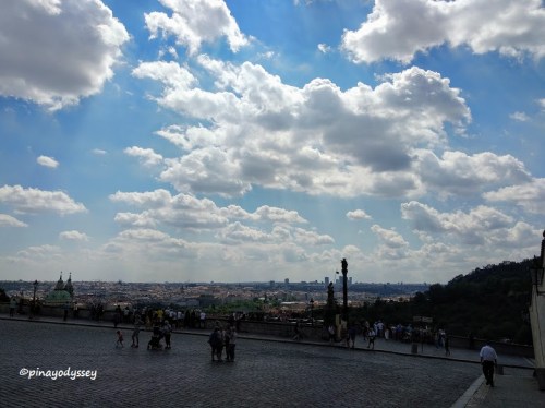 It didn’t take too long before we reached the Castle Complex! Husband was obviously getting tired by then, so we sat for a while below the statue of Tomáš Garrigue Masaryk (1850-1937), founder and first President of Czechoslovakia. Then, we walked towards the edge of the hill to admire the city and .. the Petrin Hill where we were a an hour ago!