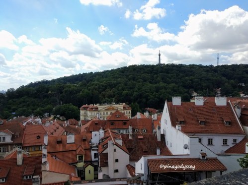 The funicular runs every 10 minutes in summer, and every 15 minutes in winter. For detailed schedule, see here. There is a stop before the top of the hill, where the Nebozizek Restaurant is located. We didn’t stop by to try that resto though. Read about the interesting history of the funicular railway here.