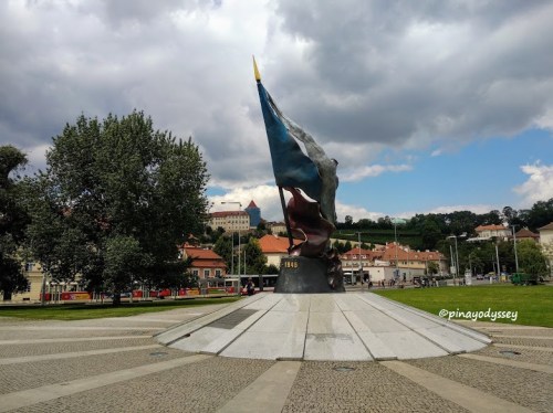 So, we took the Manes Bridge instead, named after the Czech painter Josef Mánes (1820-1871). Right after crossing the said bridge, we saw what we thought was an interesting art installation only. As it turned out, it was the Jan Pallach Memorial – a memorial to the suicide of a Czech student, Jan Pallach, in 1969, protesting the Soviet invasion. The structures were called The House of the Suicide (representing Jan Pallach), and the House of the Mother of the Suicide (representing Jan Pallach’s mother).
