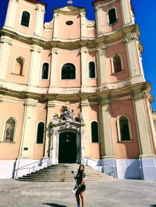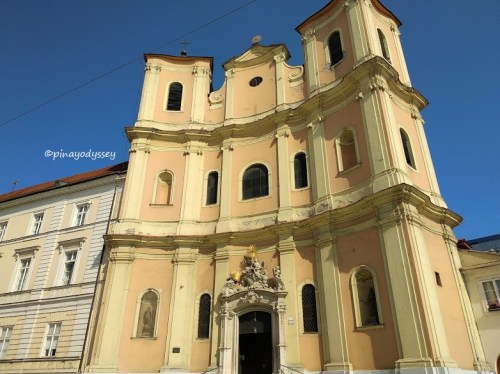 In order to get to the bus station, where we were to take Bus 29 to Devin Castle, we had to find our way through the Old Town. We passed by some attractions/landmarks, which were interesting to point out. Our first stop: the Trinitarian Church. Located on Hurban Square, the magnificent building was built in the 18th century and was dedicated to the founder of the Order of Trinitarians, St. John of Matha.