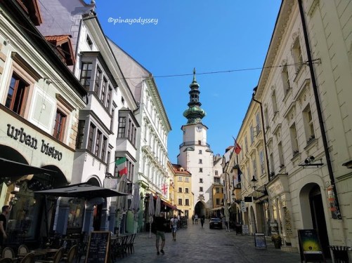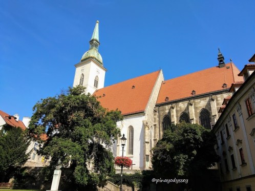 From the Gate, we walked along Ventúrska street, which was lined with shops, restaurants and other business establishments that were just beginning to open at around 9 am. Turning right towards Rodnayovo square, we came across another church – St. Martin’s Cathedral. Actually, we only caught a glimpse because we were trying to catch the bus to Castle Devin, but this cathedral we visited again the following day.