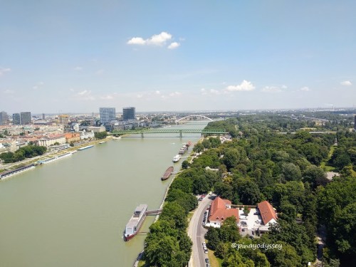 Taking the lift to the top of 95-meter UFO tower was exciting! We went straight to the observation deck to get panoramic views of the city and the mighty Danube river. There’s a bar and restaurant on top, but we weren’t feeling hungry yet, so we just tried out the interesting toilets and went back to the city center. The UFO tower is an amazing experience, check out the entrance fees and other information here: UFO Observation Deck.