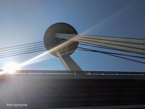The SNP Bridge, or the Bridge of the Slovak National Uprising, is a beautiful suspension bridge designed by A. Tesár, J. Lacko and I. Slameň. It was opened to public in 1972 – 431 meters in length and 21 meters in width. The famous landmark crosses the mighty Danube River, and on the other end is a 95-meter high Observation Deck and restaurant, popularly known as the UFO tower. The huge bridge has pedestrian lanes on both sides, and a highway for vehicles in the upper middle part.