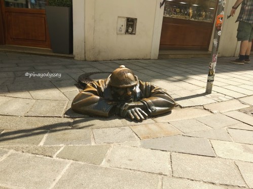 Before going back to the hotel, we made sure to visit one of the city’s well-loved quirky statues: the Man at Work, formally known as Cumil or “the watcher”. It was installed in 1997 at the junction between Panska and Laurinska streets, and became the most photographed statue in Bratislava.