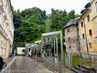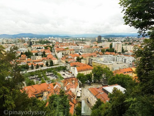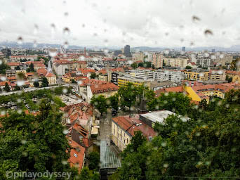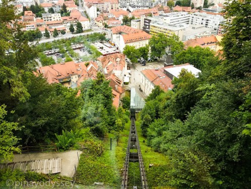 Satisfied, we crossed the Dragon bridge to get to the tourist office center and eventually, to the Funicular Railway which would take us up to the summit of the Castle Hill. We thought that was a fun and exciting way to get there, and an escape to the rain that impeded our walking exploration to a certain extent. Rain in the middle of summer? Possible, in Slovenia. 😉