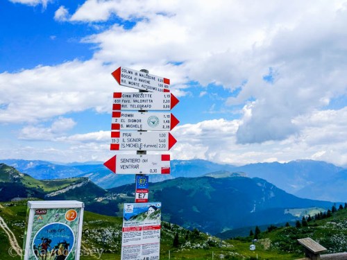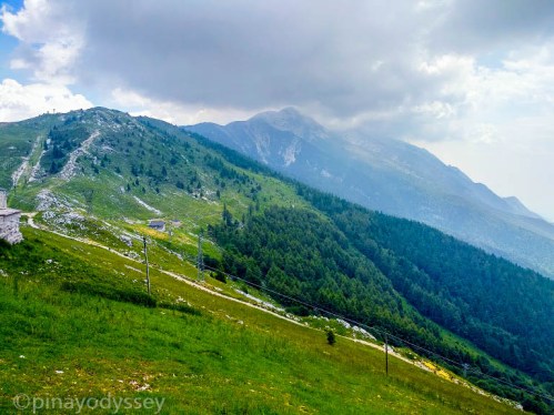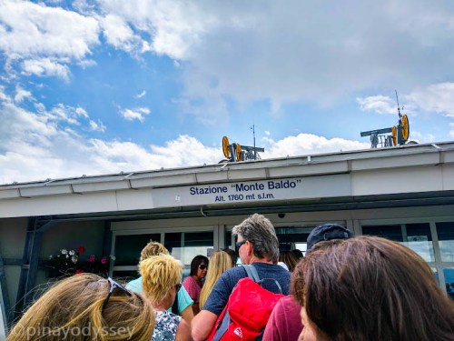 The cable car was built all the way from 1955 to promote and sustain tourism in the area. It was continuously renovated from 1962 to 2001, and in 2002, the new cable car was reopened. The base stations had a modern architectural style, resembling butterflies. We paid 22 euros each for a return ride, and it was all worth it! However, the queue was unbelievable. It was summer, and throngs of people all wanted to try it. We almost gave up, considering the time table for the catamaran boat ride going back to Peschiera del Garda. We also became worried that we would not make the cut off. But fell in line we did, and luckily, we made it! Two precious cable car tickets to the top of the 2218 m high Monte Baldo! (Ticket prices and timetable here: https://funiviedelbaldo.it/en/timetable-rates/)