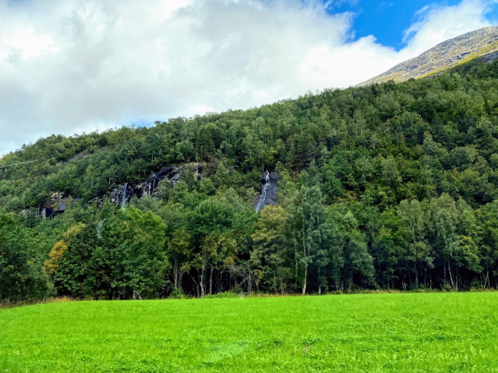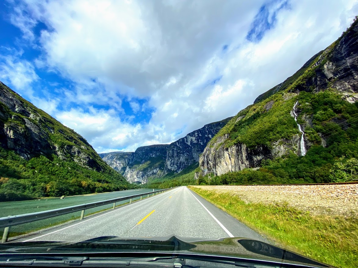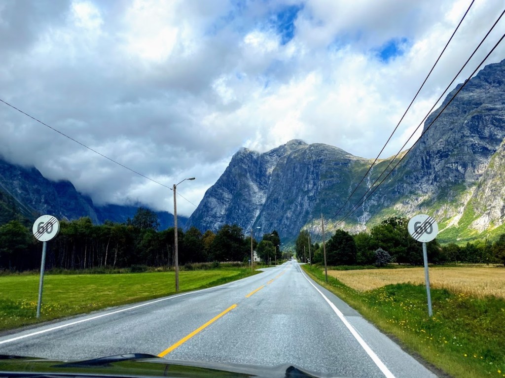 Later on, a towering mountain range stood before our eyes. We had to stop to get a better view, to let the vibes sink in, and to of course, to document the moment by taking some pictures. A taxi also stopped next to us around the same time, and an old man and woman emerged from the car. They told us that the a mountain there was the infamous Mannen (“the Man”). Carl told me that the Norwegian authorites has been monitoring the mountain because of danger for landslides and flooding. They have since 2009 evacuated people whenever the mountain showed signs of dangerous movement.