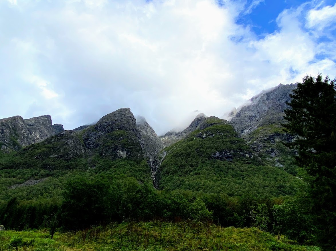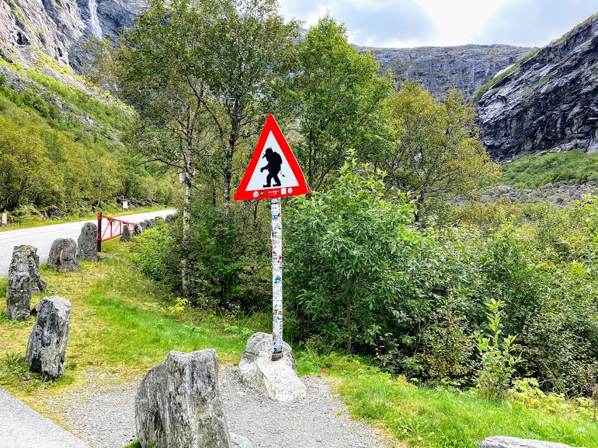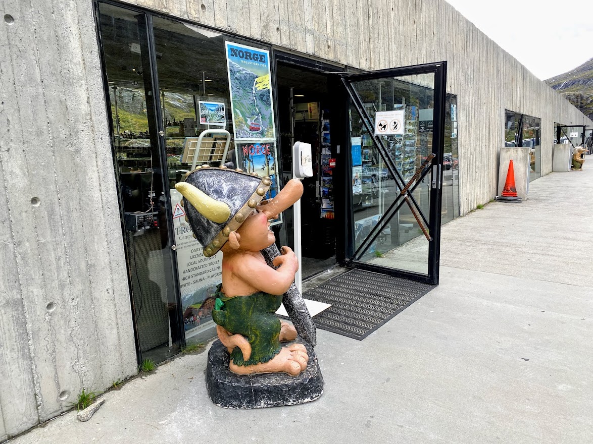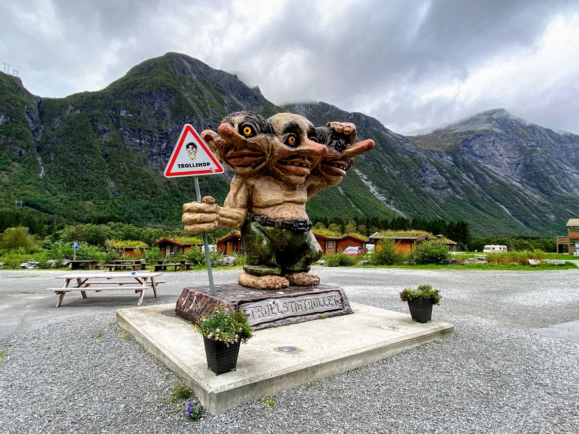 I have posted the route for this roadtrip on entry #5.1. 🙂 I was quite worried that the rain would be pouring and the roads would be wet, making the trip messy. But thankfully, we were blessed with a warm, dry time, although the skies were gray. On the way, we passed by some camping sites, including the Basecamp Trollstigen, with funny Troll statues for photo-ops. 🙂