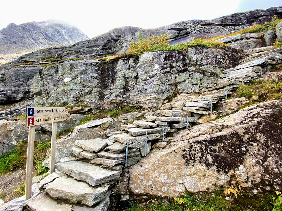Trollstigen is a serpentine road which is part of the National Scenic Route: Geiranger – Trollstigen, or road 63 (which we would be driving along later on). 🙂 It is one-way, has 11 hairpin bends and a steep incline of 9%, and will take you 858 meters above sea level up on Stigrøre, passing across the Stigfossen waterfall. “Stige” is norwegian for ascending/ladder, by the way, and Trollstigen can translated as “the Troll’s path/trail”, as the word sti means path/trail, or “the Troll’s ladder”.