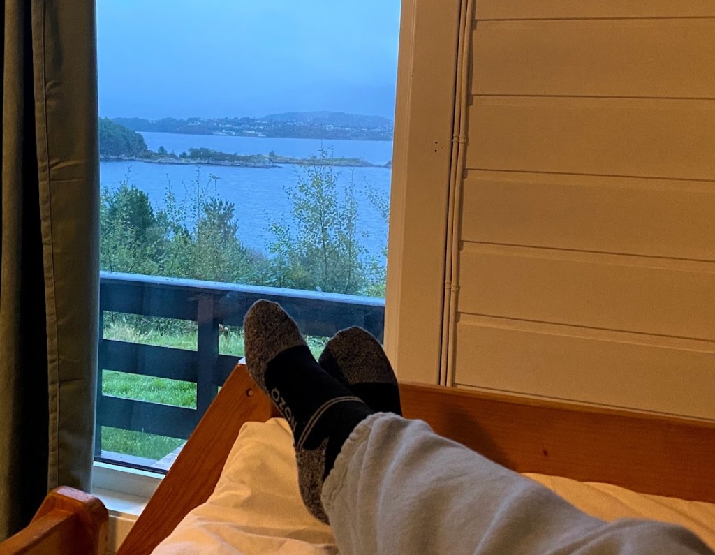 By the time we reached Ålesund at around 18:00, it was already drizzling, so we chose the closest camping site there was. We did buy a new and bigger tent, but that would have to wait because I really wanted to stay somewhere warm and dry. At Volsdalen camping, we had a small cabin with a double deck bed and warm oven.
