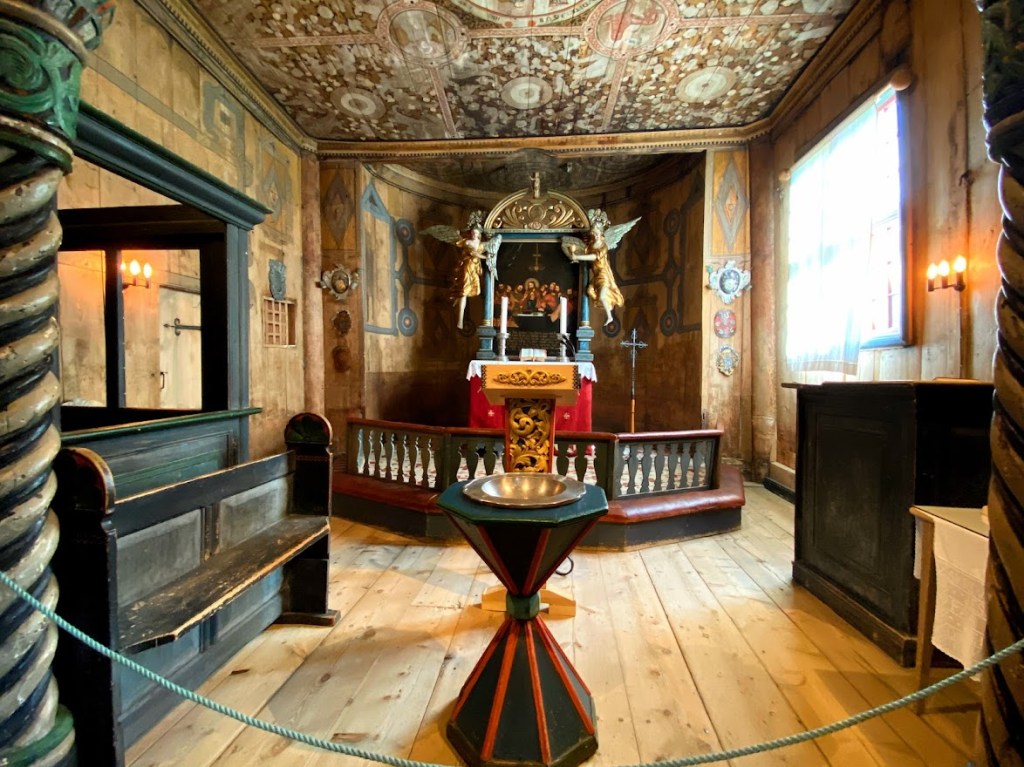 Of course, I didn’t miss the chance to see the interior of the church. Just like the other stave churches we’ve visited, I was amazed by the woodwork and the handpaintings.