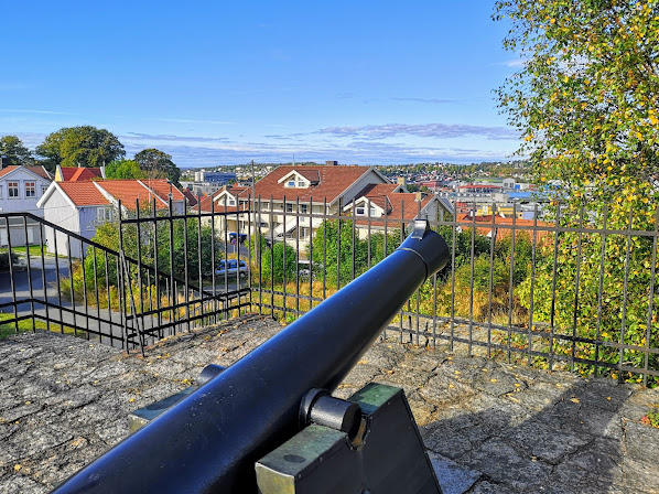 My first cache was a DNF. I looked and looked, but it was nowhere to be found. It was located on a hill with a nice view of the Oslofjord. There was a cannon on top, placed there in 1825. Interestingly, the cannon was fired whenever a fire was observed in the city, so it was like a signal system which if combined with church bells, denotes a bigger fire.