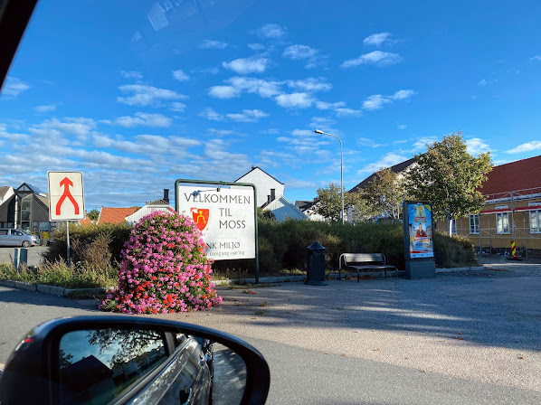 What to do when your husband has a worktrip in a nearby city? Tag along, of course! We left home at 07:30 am to avoid traffic, and welcomed the beautiful autumn sunrise on the road. There are a few route options to Moss, like 1) going through Oslo, 2) taking the Oslotunnelen or 3) taking the ferry from Horten. We went for number 3.