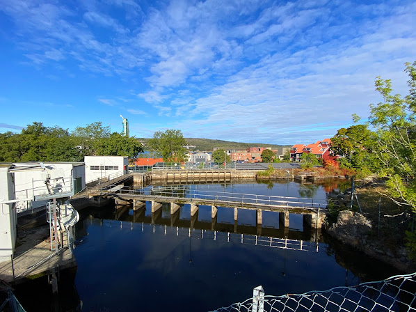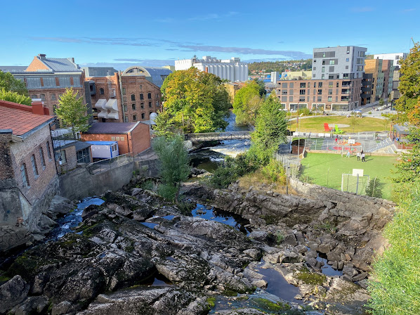 Walking further, I reached the Mossefossen (waterfall), which has hydropowerplants that helped the city establish its milling, water and paper industries. The waterfall has a height of 23.5 meters, and the first power plant was built in 1883.