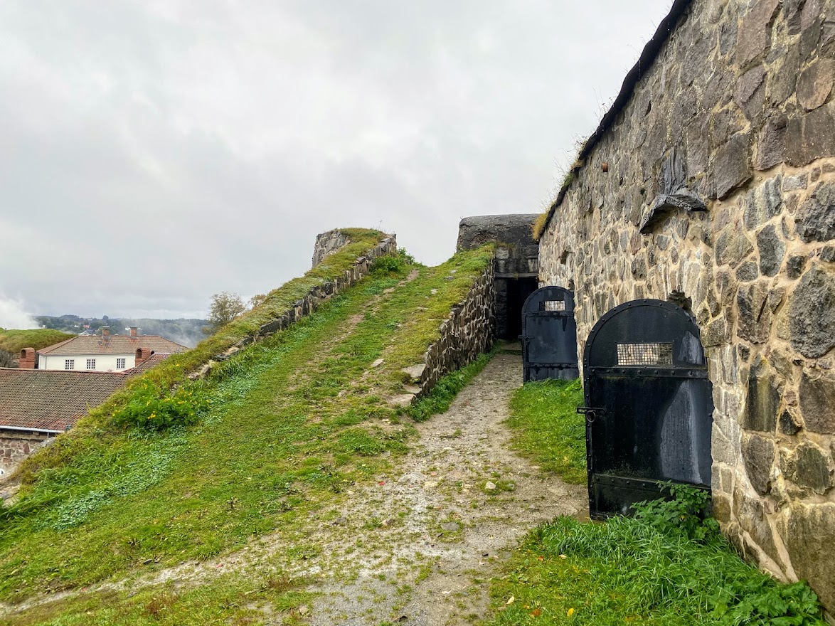 If you peek inside the doors shown on the picture above, you’d see flooded grounds, dark, damp and just creepy. The farthest door has stairs, which leads to a scary.. I don’t know, because as we were walking up, there was a creepy sound effect, probably used for some kind of a scary tour into the depths of the fortress? We ran out (or I did), and cursed in Swedish, and swore not to look back.
