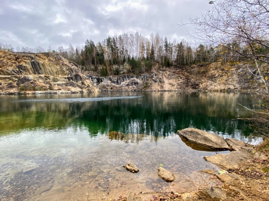 Then, we drove into a forest, which was challenging at first, but Missan + my husband’s driving skills proved to be a helpful combination. He wanted to show me a big limestone quarry which has been a touristic spot for bathing and fishing in the latter years. The limestone and dolomite deposit was discovered and mined first in 1899.