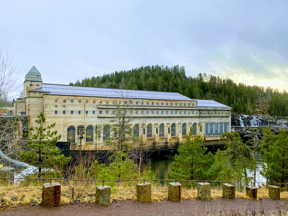 This is 2022’s first roadtrip abroad! It happened in late January – after a long bout of border restrictions due to the omicron virusvariant. We started near – jumped over the border to Sweden to do some grocery shopping. On the way, we stopped by the huge Solbergfoss Hydroelectric power plant in Askim, located on the 621-km river Glomma – the longest river in Norway. To be honest, it was the first time we learned about the power station, which is considered a cultural memorial site in norwegian power production (Visit Norway, 2021).