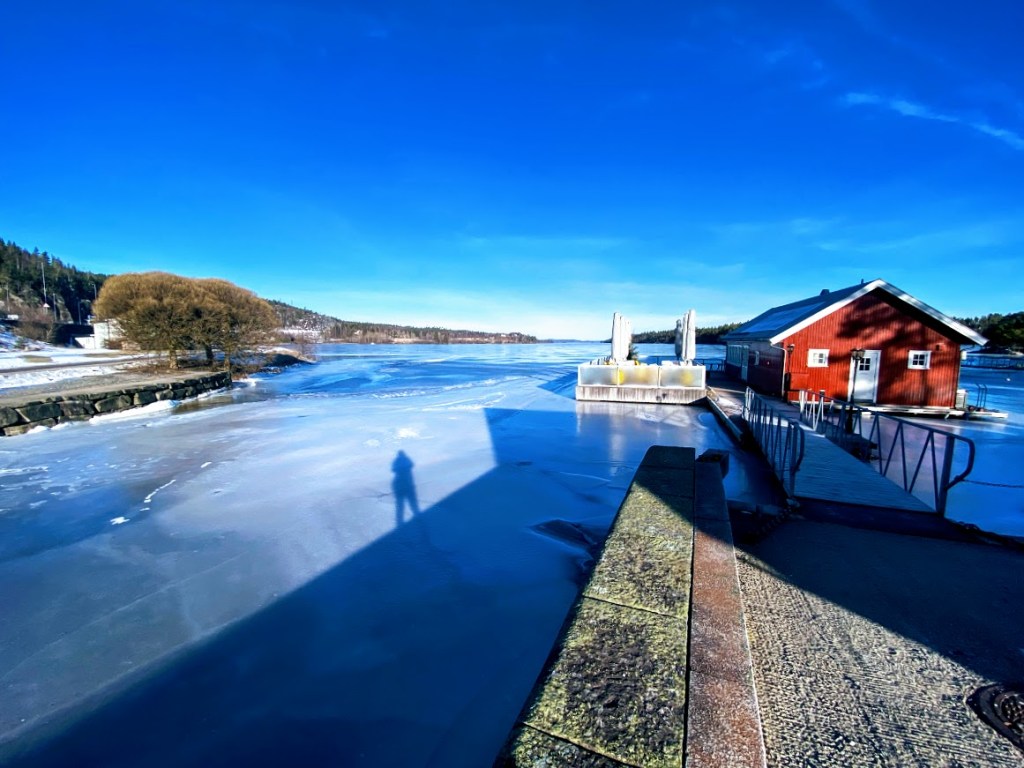 Now, we have passed through Ørje many times because that border crossing station leads to Töcksförs Shopping Center, which has been our preferred marketplace for a harryhandel (shopping in Sweden). We knew that there’s something to see there, an attraction. We finally decided to stop over and have a look. We found a big parking space for cars and home mobiles. Then, we took a walk along the frozen lake.