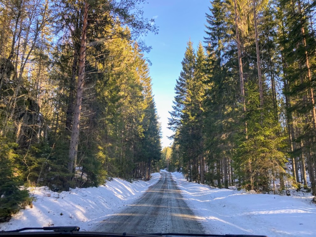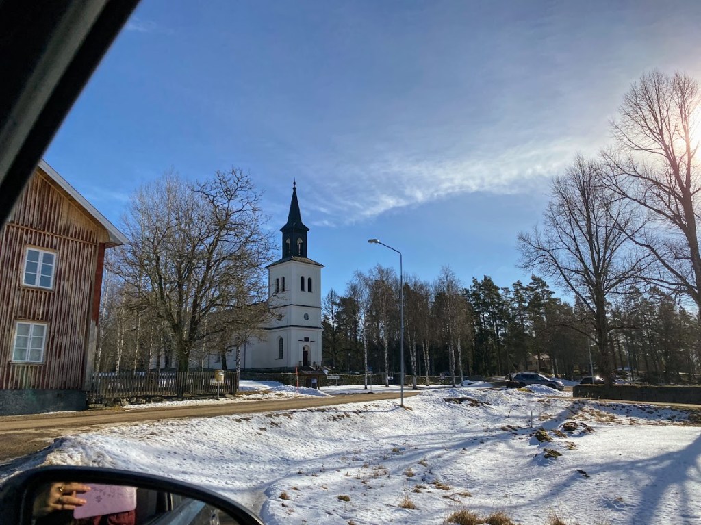 After visiting the car cemetery in Båstnäs, we drove on towards Säffle, where we booked the accommodation for the night. It was still early and we had plenty of time to explore the place a bit. We enjoyed the ride across snow-covered fields and frozen lakes. There were many churches on the way, like the one in Västra Fågelvik and the one in Holmedal.