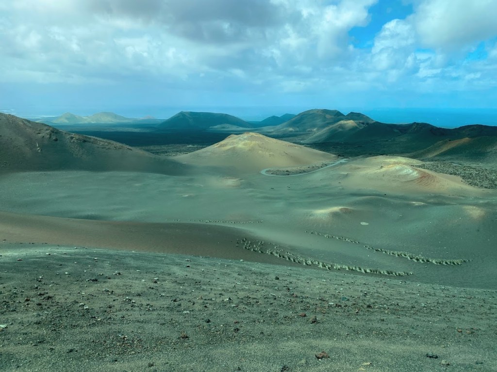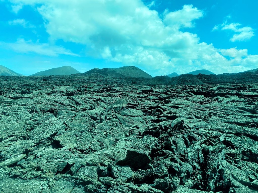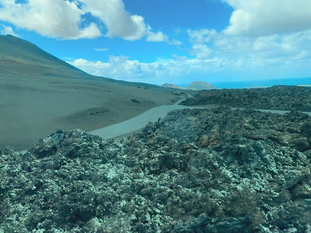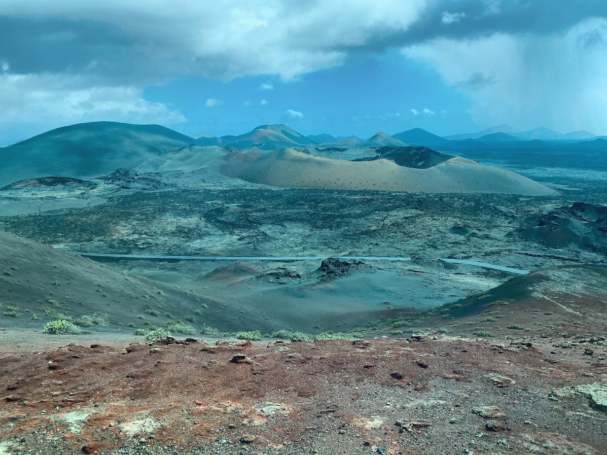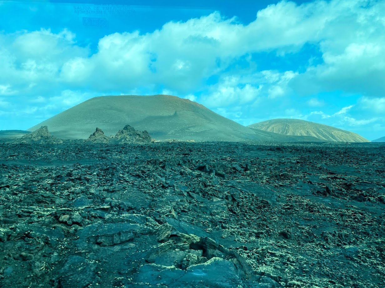 For Day 3, we let a private tour company plan the day for us, promising a showcase of the most important sites on the island: the vast Timanfaya National Park, the surprising Cueva de los Verdes and the curious Jameos del Agua. Lunch in Haria was also included. The bus was a bit late, as usual, and we picked up several more passengers before the official tour. The weather was not much on our side – it poured in the morning and in the afternoon, and it was very windy all over the island. Nevertheless, we had an interesting and educational day, making the day tour all worth it.