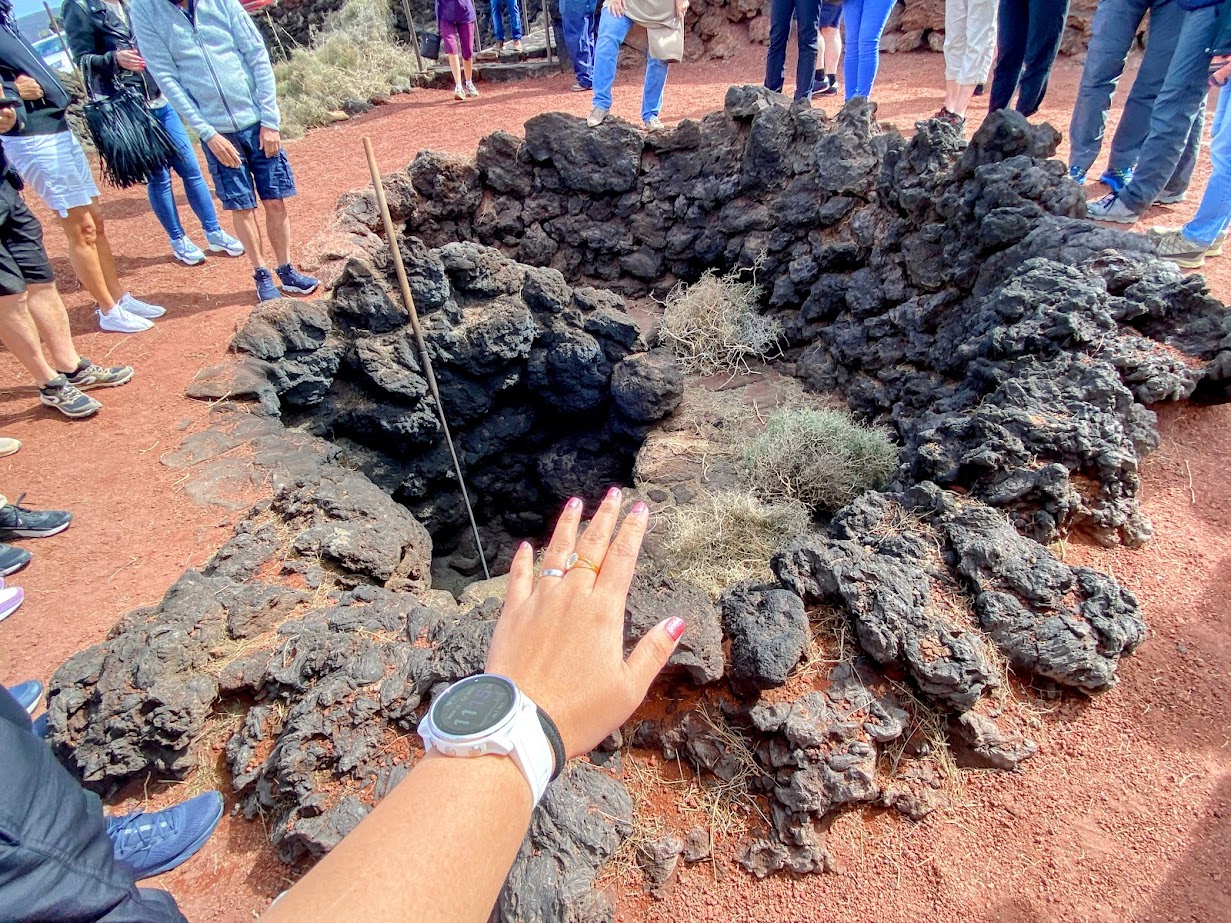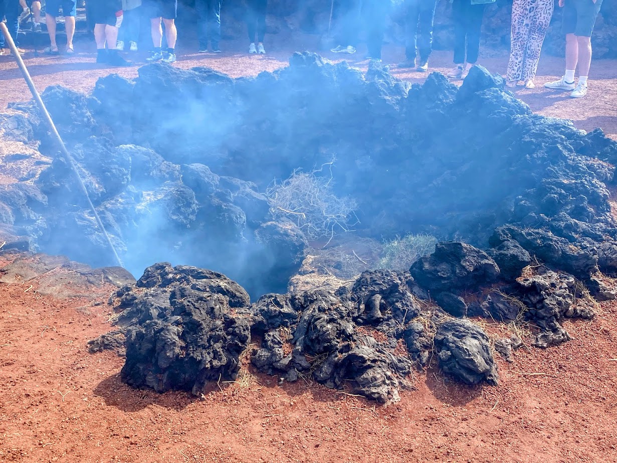 In the middle of the park is the Islote de Hilario, where visitors can grab some food from the restaurant, buy souvenirs, and be amazed by geothermal demonstrations. It was actually very cool, because despite the wind and the cool breeze on the surface, the layer of sand a little bit under was hot! The islet also has thermal anomalies, which, according to sources, means that the surface temperature could reach up to 250 degrees Celsius, and 600 degrees Celsius about if 13 meters deeper.