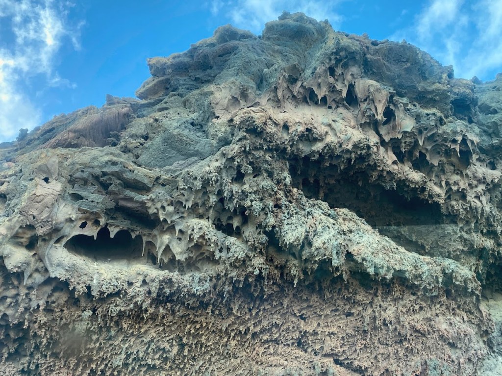 We exchanged buses in Yaiza, a small town in the southern end of the island which has retained the typical white houses in Lanzarote. We didn’t do much in Yaiza, although it was possible to eat in the restaurant or climb the mounds while waiting. Our tourguide even took a smoking break with another driver. Everyone was laidback at the beginning of the tour.