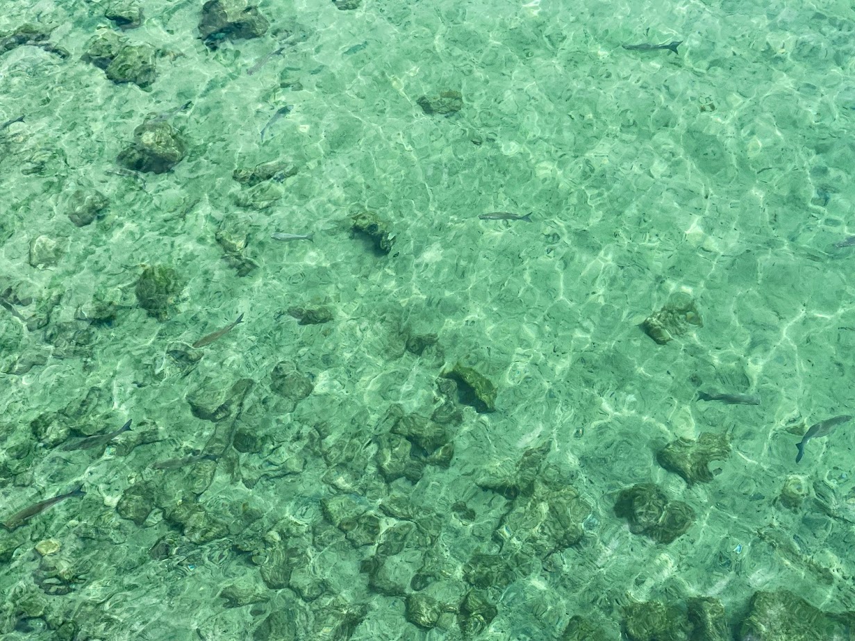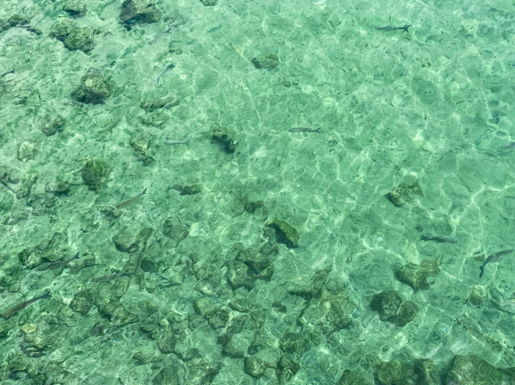 To avoid further delays caused by the unreliable public transportation (in my honest and humble opinion), a taxi was hailed. The causeway leading to the castle rose from a beach bed covered by turquoise water. Some youngsters were swimming, and a few were seen fishing! The water was so clear that schools of fishes were visible!