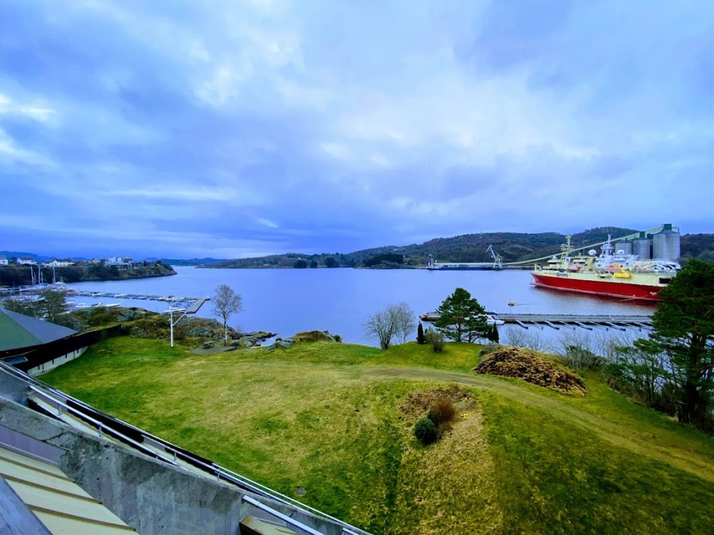 The trip south to Farsund took about 5 hours, thanks to roadworks. We left Wednesday afternoon and planned to stay until Friday noon. Thankfully, Missy was all quiet and peaceful. We thought that the trip to Borås had helped her get more used to roadtrips. We had a nice and very spacious room at Farsund Fjordhotel, with a good view and a balcony which we didn’t use, as it was still cold in April.