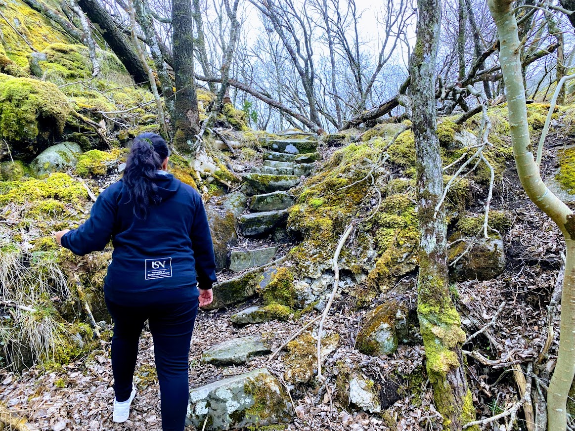 We followed the blue path (supposedly an easy path) back to the main road and on to the parking space.