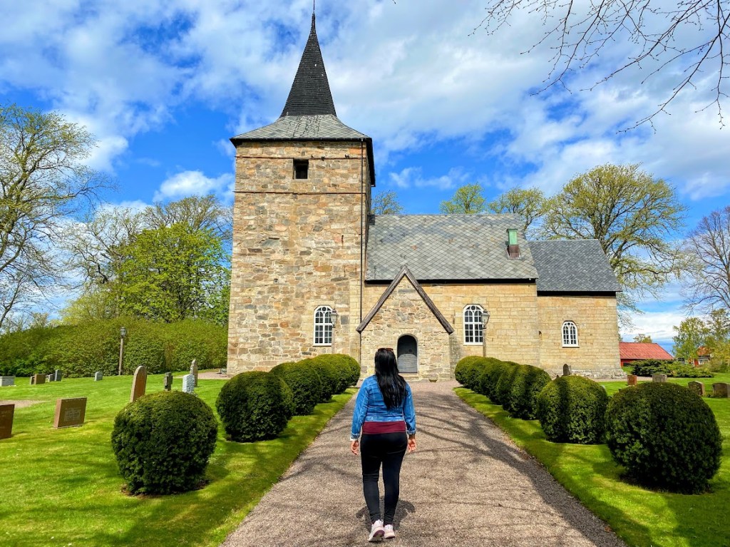 According to its official website, the “door to the southern armory is iron-mounted and has holes from rifle bullets attributed to the ravages of the Danes during the latter part of the 16th century” (https://www.svenskakyrkan.se/sodrakalland/sone-kyrka). Unfortunately, the church was closed on a Saturday, so I didn’t get to see the interior, the altar and the monk’s chamber, among other features. There are pictures available online though. We did go around the church to look for peepholes, hehe, but there wasn’t much to see through the thick window glasses.