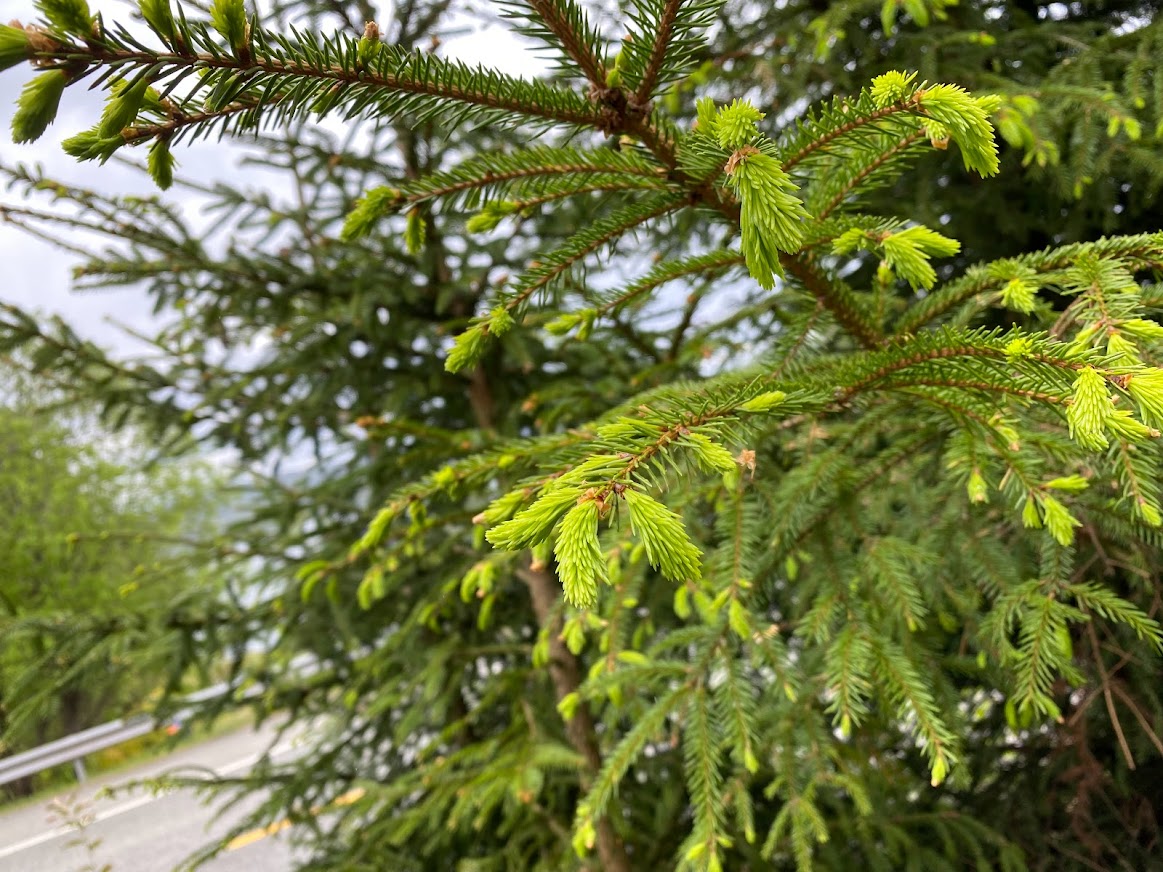 The path was we took that time was pleasant and paved. We passed by stone walls and trees of different types. Then there was the alley with Norwegian spruce trees. Hmmmmm… gran. Spruce is gran in Norwegian. They smell so good, like authentic spring.