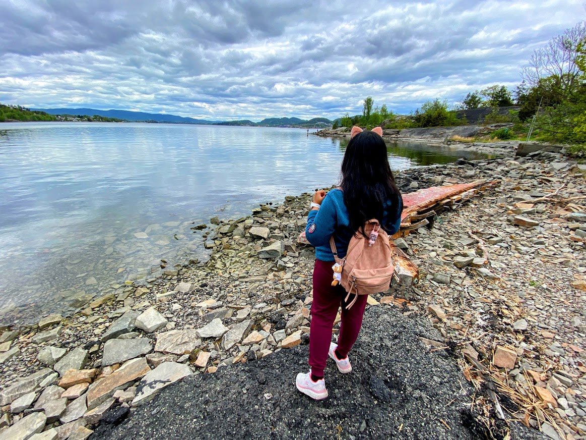 When we arrived in the parking lot, the rain had stopped. Haha – typical Norwegian weather. I had the chance to have some photos taken by the bay.