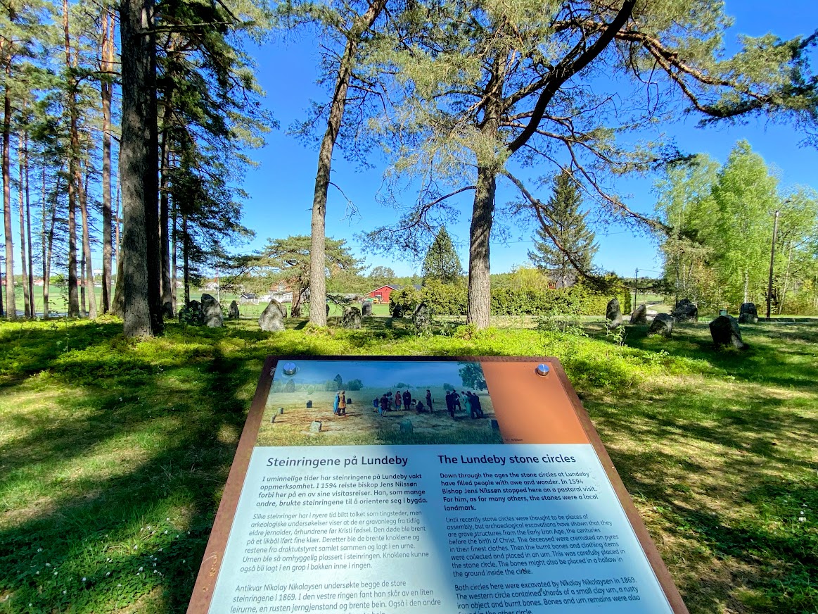 After the hike, we were drenched in sweat. So we changed shirts in the car. Carl put his wallet on the roof of the car and forgot to take it back again. We didn’t realize that right away of course. So, we continued the road trip and visited a random attraction in the area – the Lundeby stone circles. At first, people thought that the circles were a sort of an assembly. But through excavation, it was discovered that they’re actually burial grounds dating back to the Iron Age.