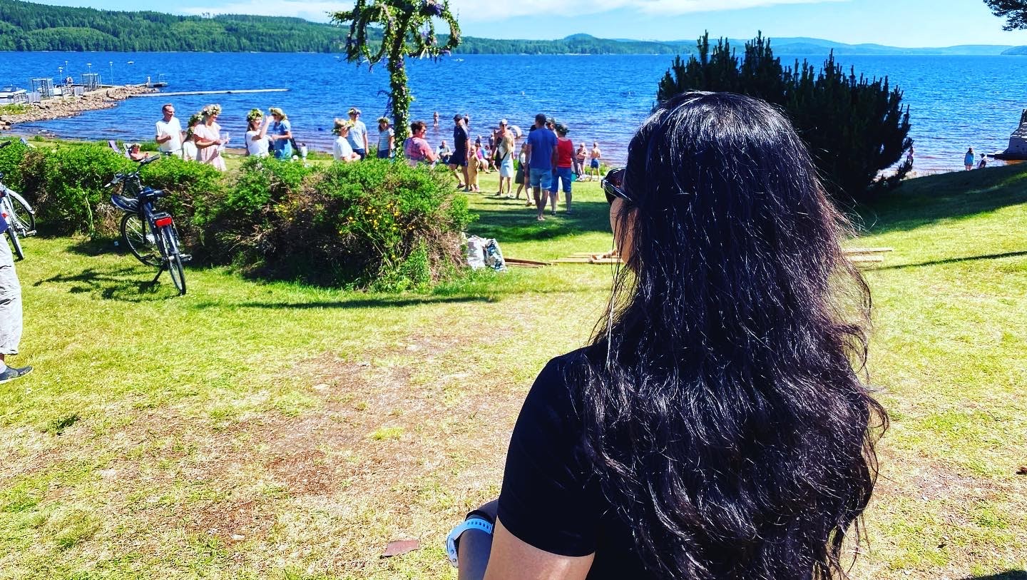 It was a clear day. How we ended up in Torsby was a product of a quick google search for places with a Midsummer gathering and an accommodation which allows both humans and cat. 🙂 Many urban places in Sweden had planned the celebration, but we wanted to go to a less crowded place. Most of them also started at 12 noon. Due to work, we couldn’t leave earlier and thus, hoped to find one that would have the dancing and singing later that day. Thankfully, there was Torsby (literally translated as Thor’s city).