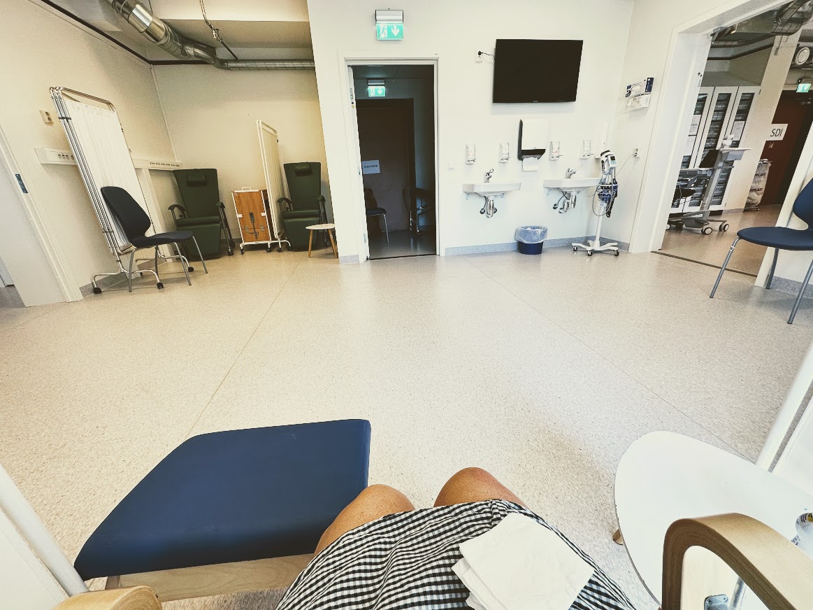 They took my vitals (temp 37.2C, BP 122/78, pulse 73 and SPO2 99%). So, I seemed fine. A urine and blood test was also taken, which turned out positive for leukocytes. My CRP was at <10 at that time. The doctor inspected my tummy and afterwards, I was injected painkiller medication (Voltaren). Hallelujah, it was effective! I was sent away, and my husband and I continued the drive to Sweden.