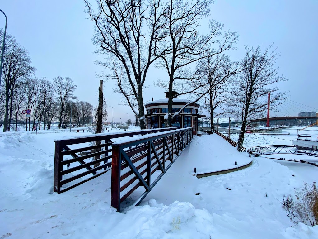 As the idea of crossing the border to Latvia was spontaneous, we didn’t have specific attractions to visit. When we felt like we needed to get out for fresh air and stretch a bit, we just did it. Jelgava is a city about 41 kms from Riga. It’s the 4th largest city in the country. We stopped by there and enjoyed seeing some fireclay statues surrounded by snow. Even the water surrounding the Post Island, a recreational spot in the city, was frozen.