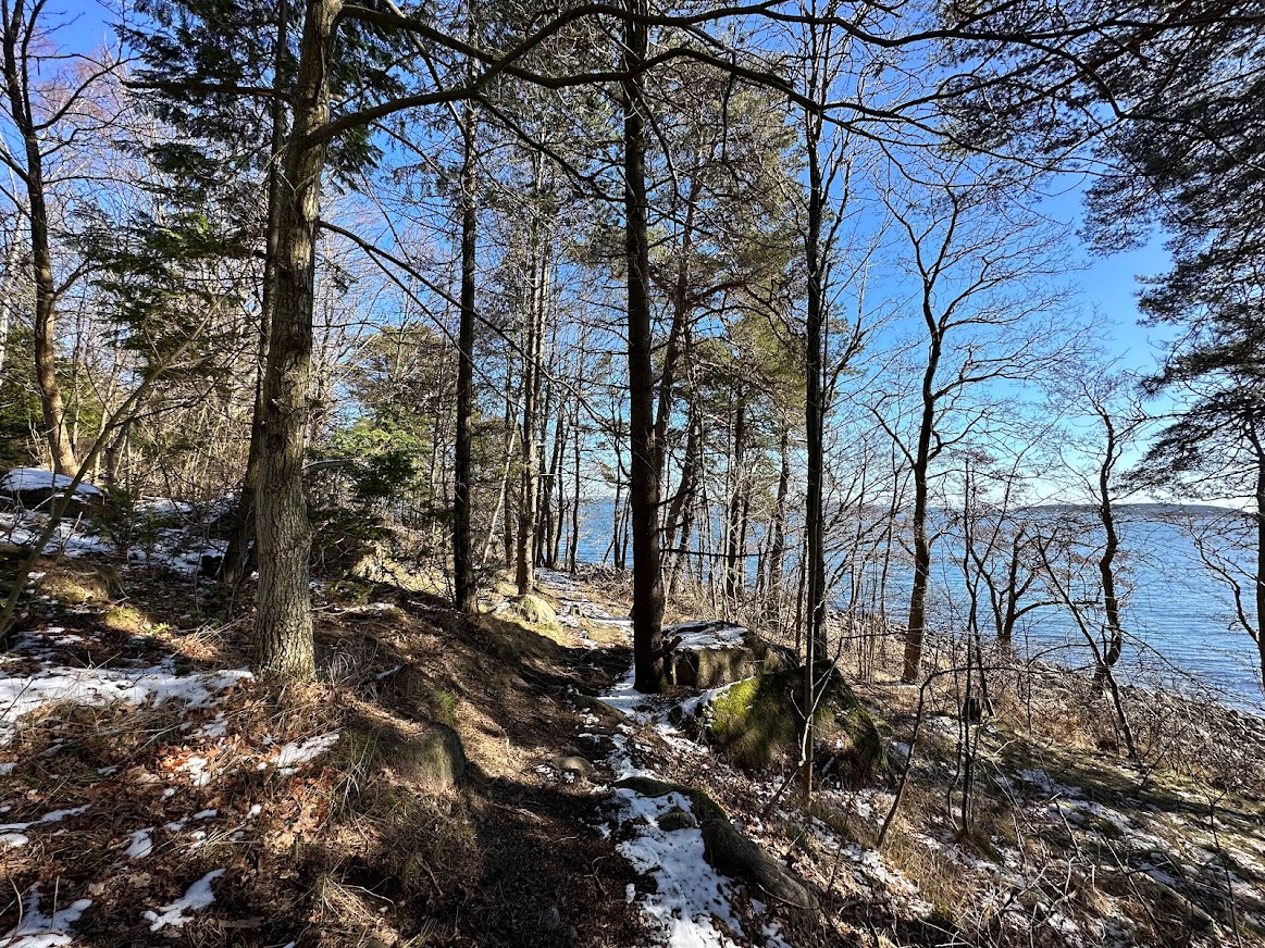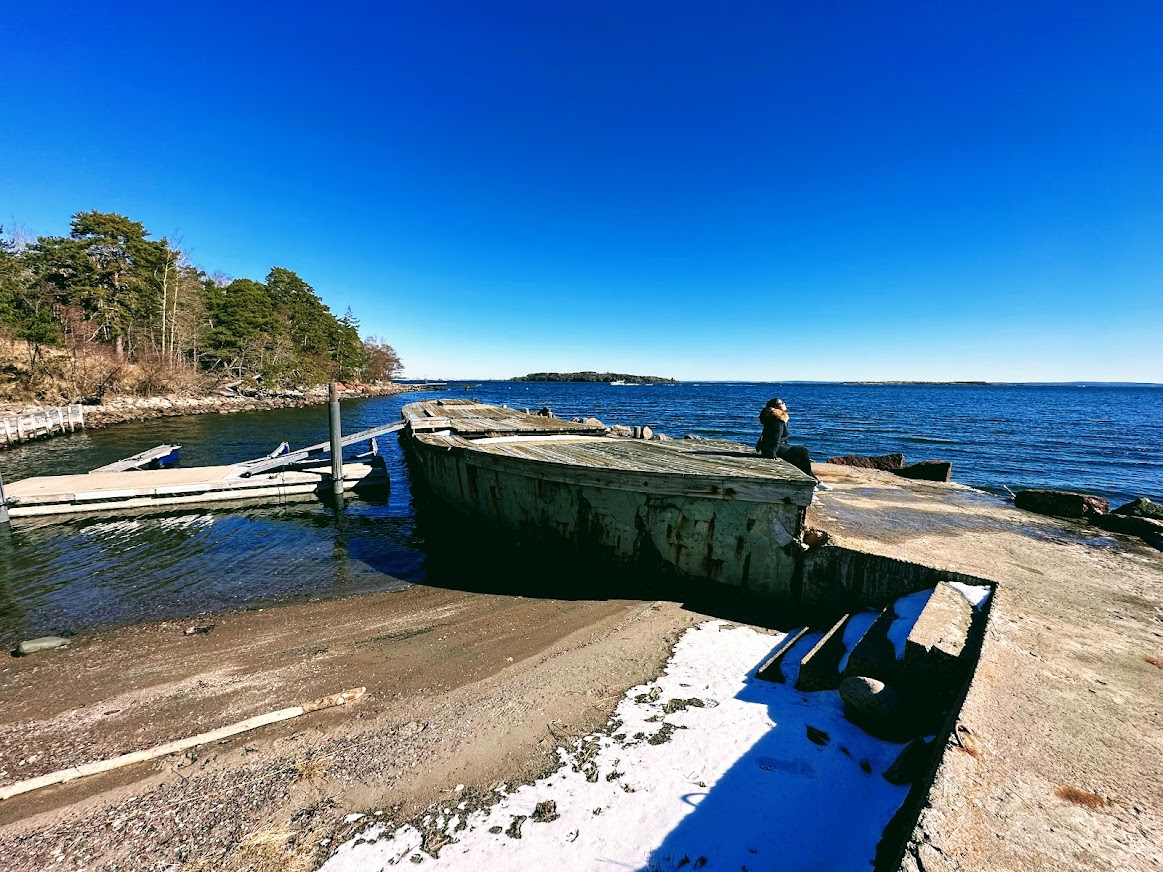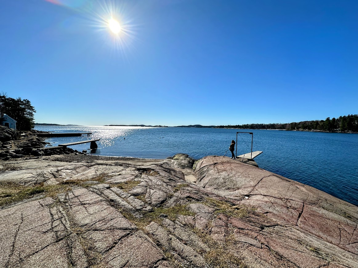 Early signs of spring was visible, although some parts of the trail was still covered in ice/snow. There was a diving board and many boat parking platforms around Husøy. I also saw a some pebbles with weird patterns. Super cool 🙂