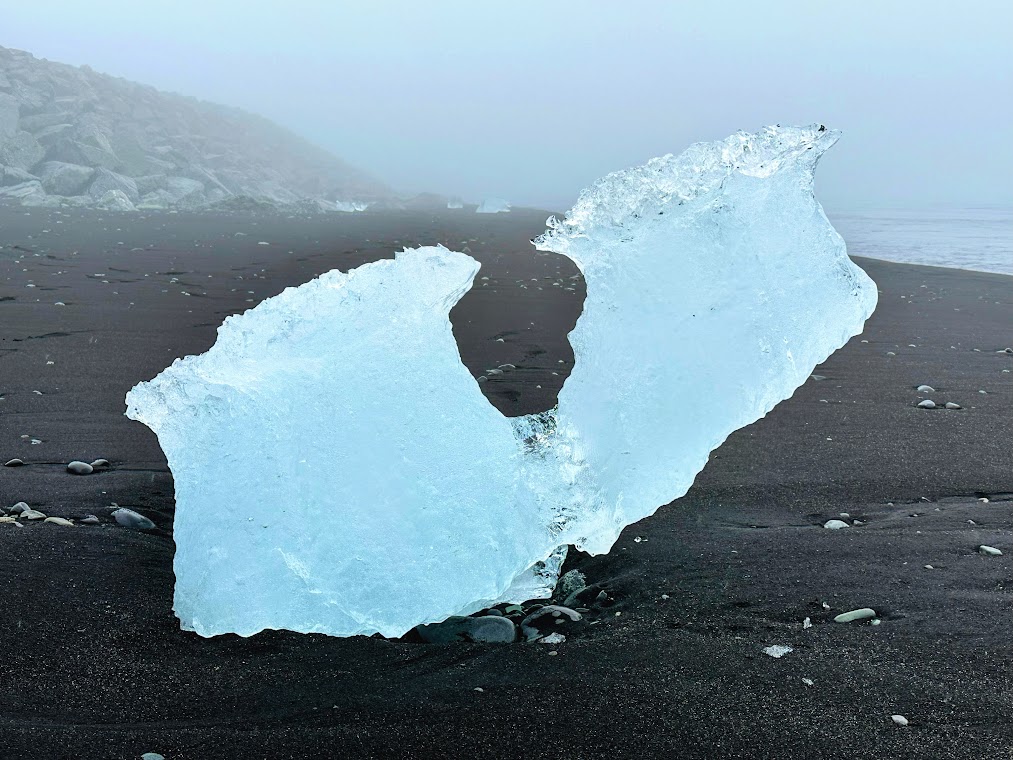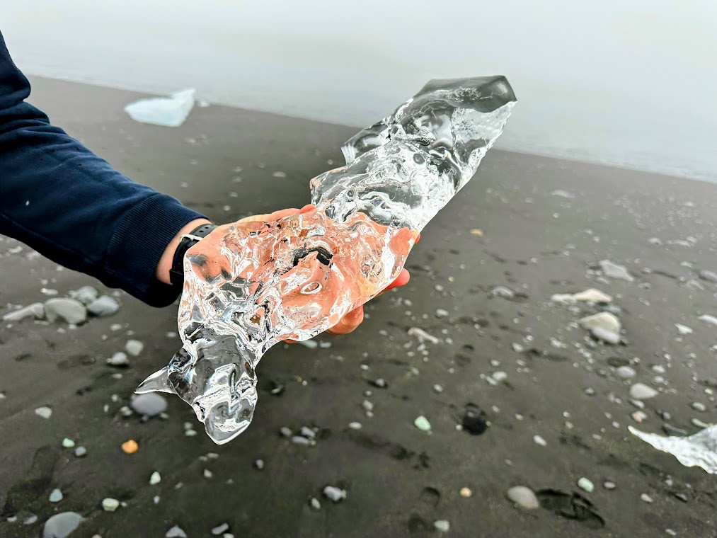 Initially, I wanted to book some activities in the lagoon, but even 2 months in advance, the activities were already fully booked. I guess it was okay, since we didn’t really see anything in the lagoon but fog. The Diamond beach is separated by a river flowing from the lagoon. We first checked out the west side. The beach was there, we could here it loudly gushing into the beach, but we couldn’t see it. Some diamonds were opaque, while some were see-through.