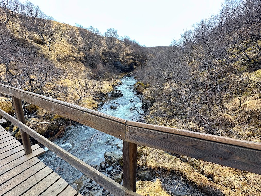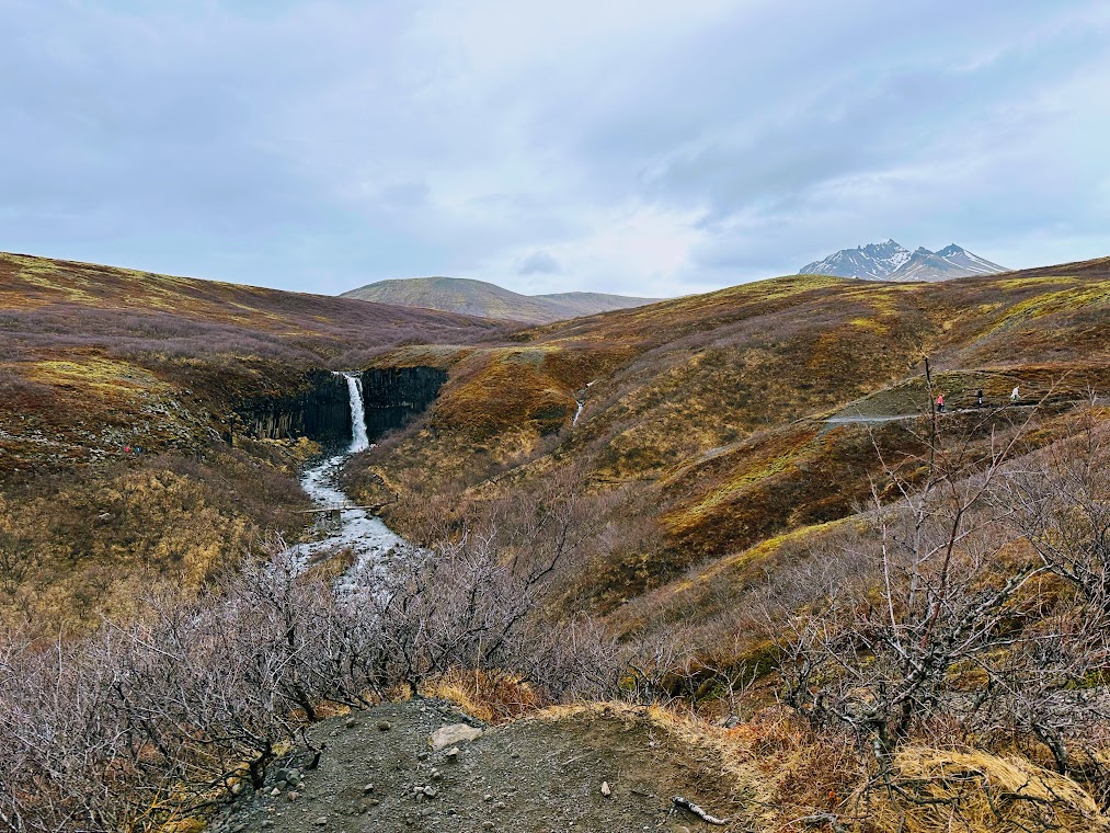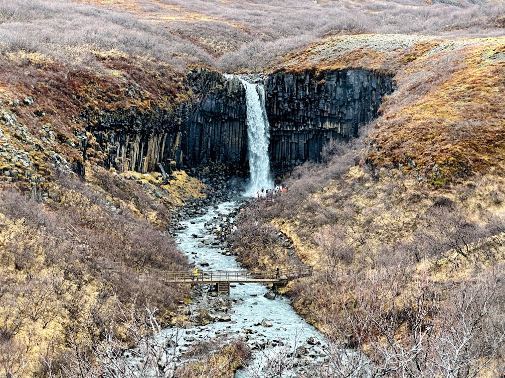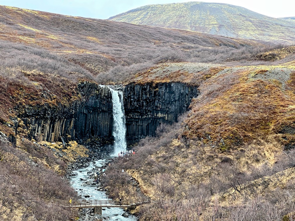 Many moments later, I finally heard the sound of the cascading water coming from Svartifoss. Hurray! However, my knees shook when I saw that I had to walk past a cliff, along a single-line trail, to actually go down the waterfall bed. I needed encouragement from my husband in situations like this, but there was no phone signal on top! That’s when I decided to just admire the beauty of the 20-meter tall Svartifoss from afar. Det er ingen skam å snu, as we say it in Norway. I wasn’t alone. There was an Asian tourist who also decided to stay in the viewing platform and wait there for his friends.