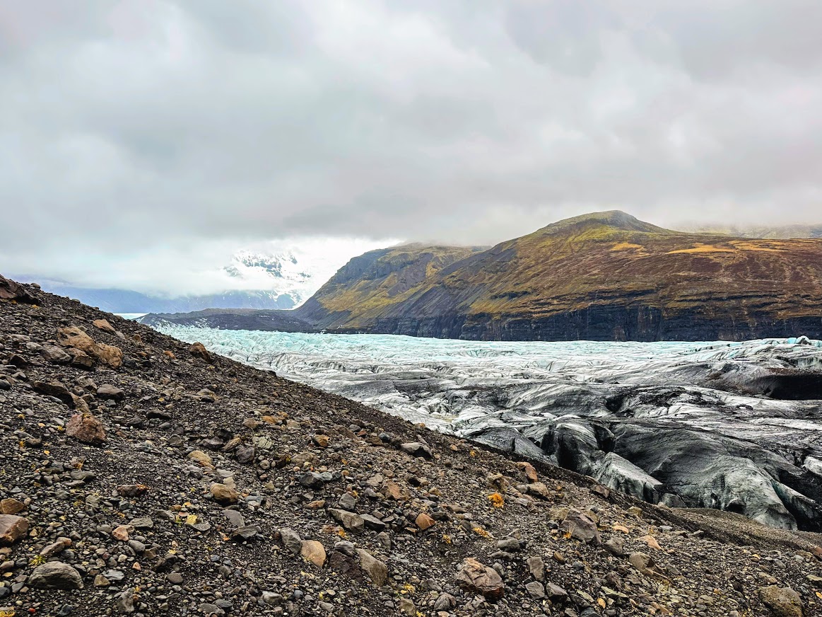To get closer to Skaftafellsjökull (I imagine sjökull to be the Icelandic word for glacier? In Norwegian, it’s isbre), one has to go around the mountain separating the two. There was a narrow trail, but we’re not prepped for it. It is also highly advised that glacier explorations be done with cautious and with a local guide. So, we just admired the glaciers from a safe distance.